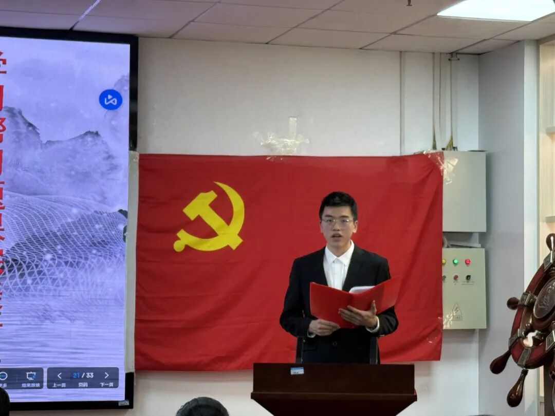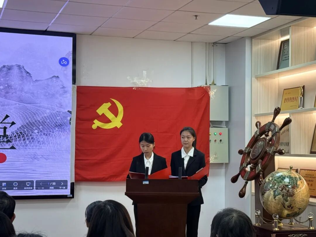 六合宝典官网 学生党支部微党课讲师熊韵岚汇报了党史学习教育开展情况,紧密结合学科特色与学生实际,以“两弹一星”精神为主题,通过班会宣讲、下寝室、幕布剧、“逐光”宣讲团等多样形式开展的系列政治理论学习,累计覆盖4000余人次。并表示六合宝典官网 学生党支部将继续发扬党员先锋模范作用,在学党史、悟思想、办实事、开新局上做出新的篇章。